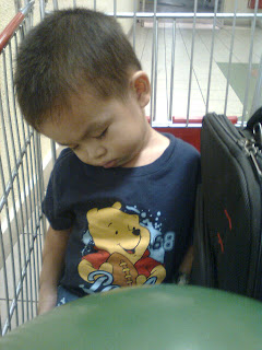 Juan Or is all exhausted from his shopping trip with papa & mama, hence falls asleep in the cart. Haha, cute lil boy with his head up and down.